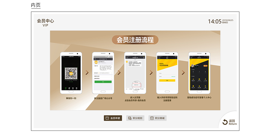 商场导航软件里面还有商场的促销活动、停车缴费、排队取号、会员注册等等功能,齐全的功能快速地提高了商场的运转效率,当我们在商场里面去搜索查找商家的时候可以通过扫描商场导航系统上的二维码,便可以在用户手机上获取到导航路线,用手机实现实时导航到目标店铺。
