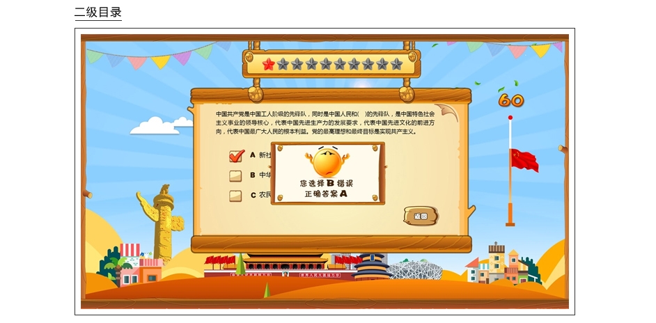 每个参与者都可以通过答题的模式,从简单到困难程度进行回答,答对或答错都有伴随着动画音效进行互动,给参与者一种很好地体验感。