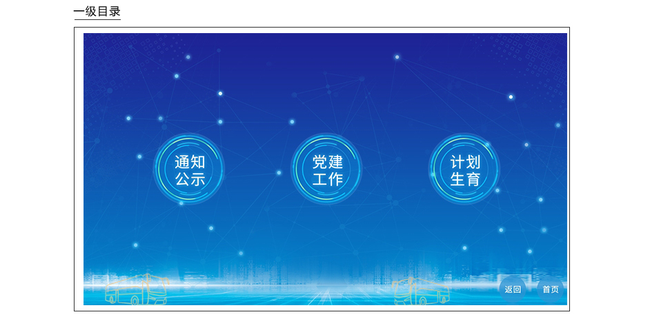 1、采用现流行大众化手机的图标展示方式,对同类型事项图标归类,分类展示,左右滑动图标界面进行翻页,点击图标可进入下一层分类图标。