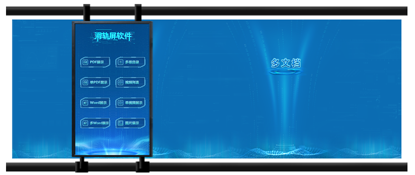 互动滑轨屏因其良好的补充说明的功能,在企业数字展厅、博物馆、纪念馆、会议展厅等领域被广泛应用,如今在商场、大型展会以及高端店铺也有尝试应用。通常结合展示墙、展示台等辅助画面进行内容展示。互动滑轨屏是一种新型数字展示方法,其展示手段为滑轨显示屏+背景内容组成的动静结合的模式。“动”是指在前端可进行互动展示的高清液晶显示屏,“静”是指作为背景的展墙或展台所呈现的辅助内容,呈现手段上通常选择灯箱、静态展板或液晶拼接屏。互动滑轨屏的工作原理就是通过显示屏在类似坐标轴的滑轨上滑动,到达特定位置触发传感信号,从而配合不同位置的背景辅助内容进行充分、完整的内容展示。此外,除了滑轨屏根据系统设定,自动展示信息,还可以通过人为互动,达到展示内容切换的效果。互动滑轨屏具有优秀的互动性,多点位触控互动模式让参观者除去掌握必要的信息以外还能享受到智能科技带来的体验性和趣味性。一方面能够减轻人工讲解的负担,另一方面还能够用有趣的三维动画代替乏味传统的的语言、图文讲解,从而使参观者更愿意接纳。互动滑轨屏作为多媒体新兴产品,其不光有独特属性,还兼具多媒体展项的共性。其中一点就是承载的信息量非常大,比常规的展墙展板更节省能源和资源,且内容还便于更新替换,为不同时期想要展示不同内容打下坚实基础。互动滑轨屏将静态墙面做初级展示,用滑轨屏做补充完善,做到图、文、动画的有机结合,让参观者更有参观兴趣。且这种手段呈现内容更加清晰明确,一目了然能起到更好的宣传的作用。