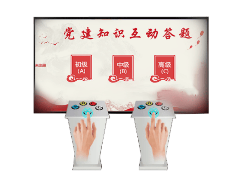 党建知识抢答互动系统可以不用佩戴任何感应设施也可以进行作答,灵活性强;极简式安装拆卸,插上电源即可使用,节省时间精力、简化繁琐流程,操作简单;新型党建宣传产品,吸引人气更利于科普党建知识,聚集人气。