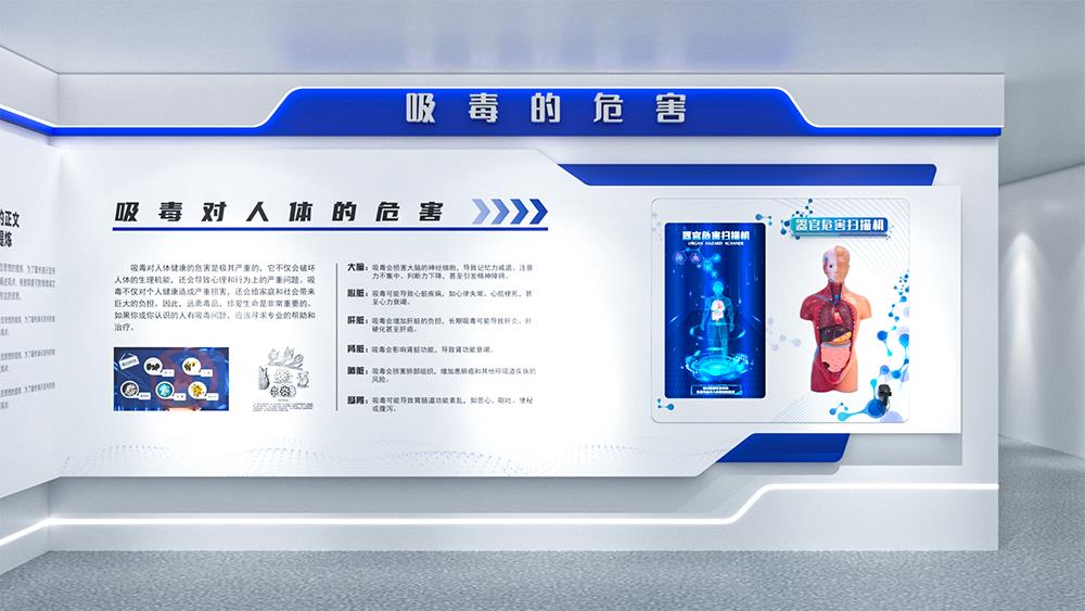 器官危害扫描机是新研发出来的一款多媒体禁毒演示设备,由显示屏、假人模型、扫描仪及软件部分组成,体验者通过扫描人体各器官,如大脑、牙齿、肺部等,感应触发显示屏播放䓯...
