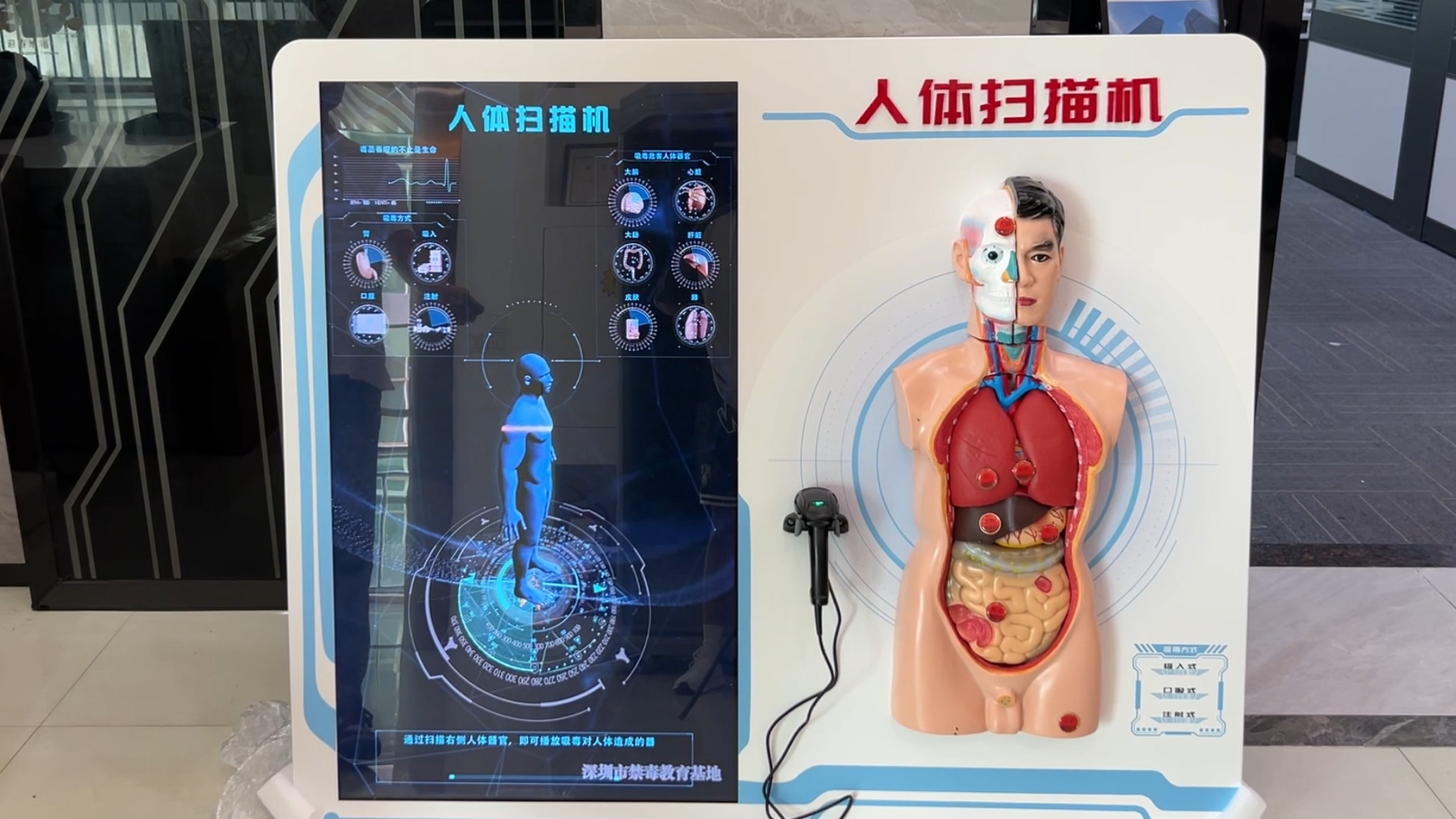 器官危害扫描机是一种新型的禁毒教育方式,通过定制的人体感应模型,扫描人体模型上的对应器官,屏幕上即出现吸毒后毒品对人体器官产生的危害组织变化等,通过3D动态,演示器官...