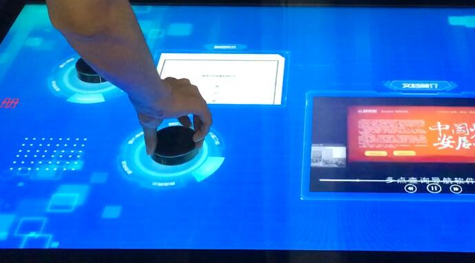 电容屏物体识别互动桌支持多点触摸功能,可通过物体令牌实现智能识别,实现物体展示和多点查询交互。其有趣的互动体验和灵活展示吸引了众多人的关注,在各类展览场合中备受青...