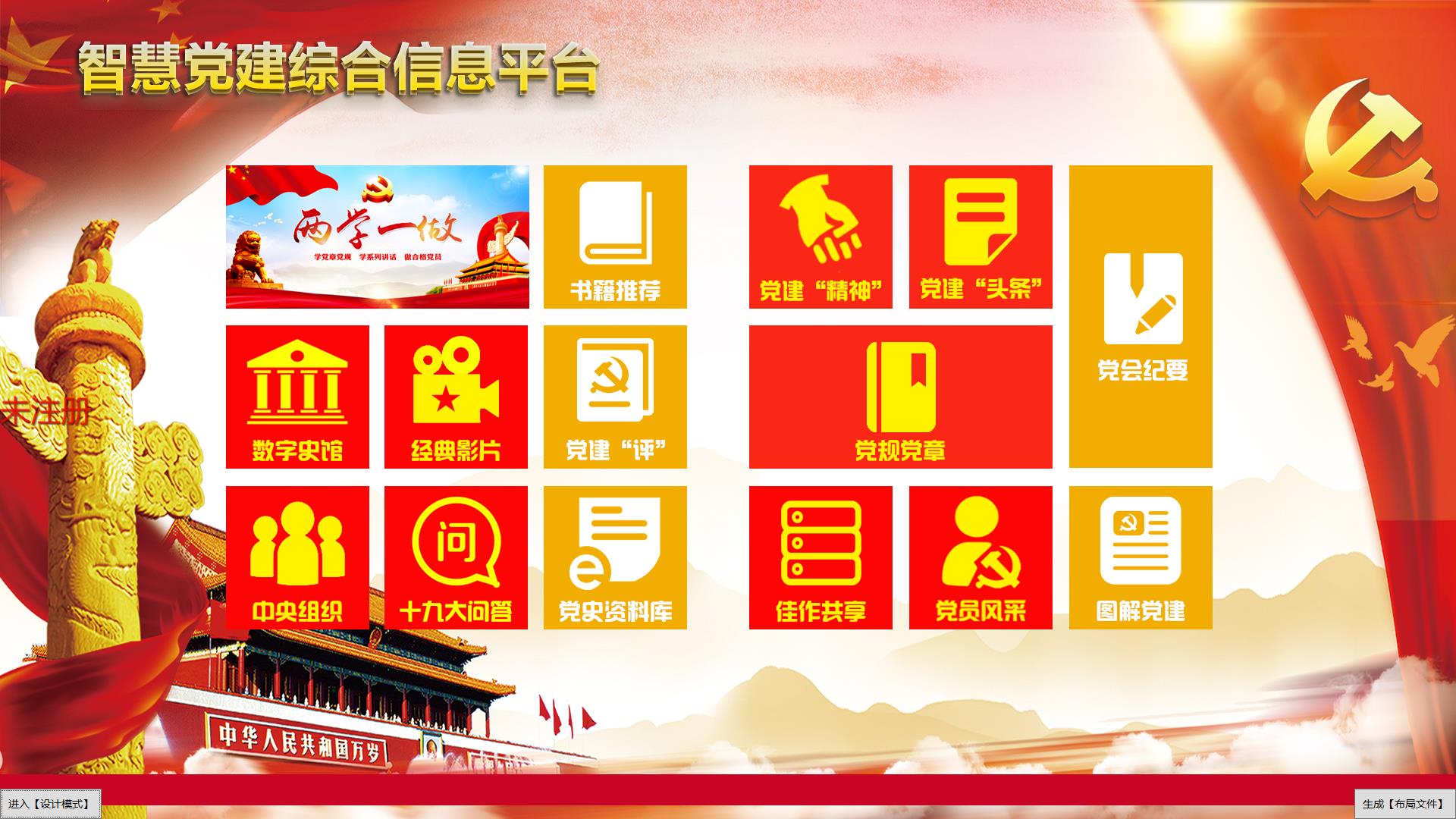 党建大屏互动软件支持定制背景图片和定制功能按钮、视频、图片、文本、自动开关机、后台数据更新,更好地满足智能展厅的基本展示需求,形成更高的发展水平,实现现代社会建设...