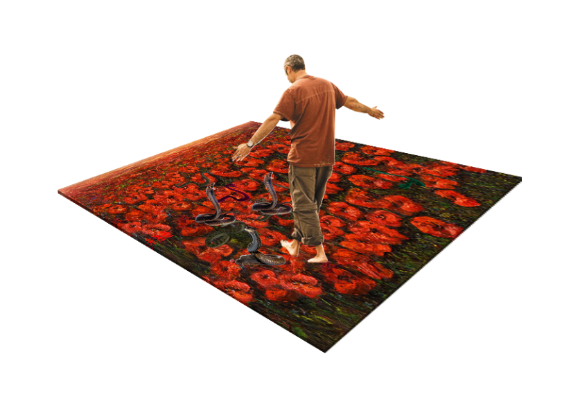 踏入展厅的瞬间,脚下骤然蔓延出一片妖艳的绯红花海——花瓣随步履舒展,荧光花粉在空气中流转成星河,指尖轻触花蕊时,绚丽的粒子如烟火升腾……这令人沉醉的浪漫场景,却暗...