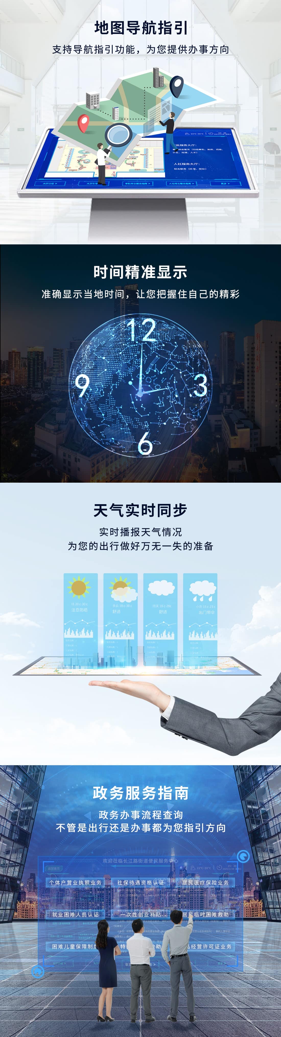 1、软件名称:导航软件-平面导航 2、硬件要求:I3 四代以上,内存4G以上,Windows系统。 3、软件功能: A、分辨率:自适应分辨率。 B、待机可自由设置全屏广告,触摸后进入导视系统主界面。 C、支持自定义楼层、店铺位置、品牌标识、公共设施。 D、支持自定义品牌优惠信息或活动,点击查看详细活动信息。 E、支持自定义商场简介、文化、发展历程、招商联系方式、周边信息等内容设置。 F、支持单机版运营,在没有网络时,也能运行。 G、资料更新:素材制作好后,可通过U盘或远程操控更新至终端机上。