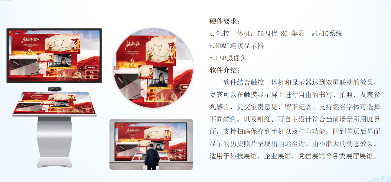 *支持嘉宾可以在触摸显示屏上进行自由的书写、拍照,发表参观感言、提写宝贵意见、留下纪念。