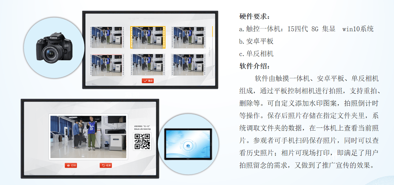 *支持自动生成二维码保存和打印功能,供用户照片扫码留念、相片现场打印,即满足了用户拍照留念的需求,又做到了推广宣传的效果。