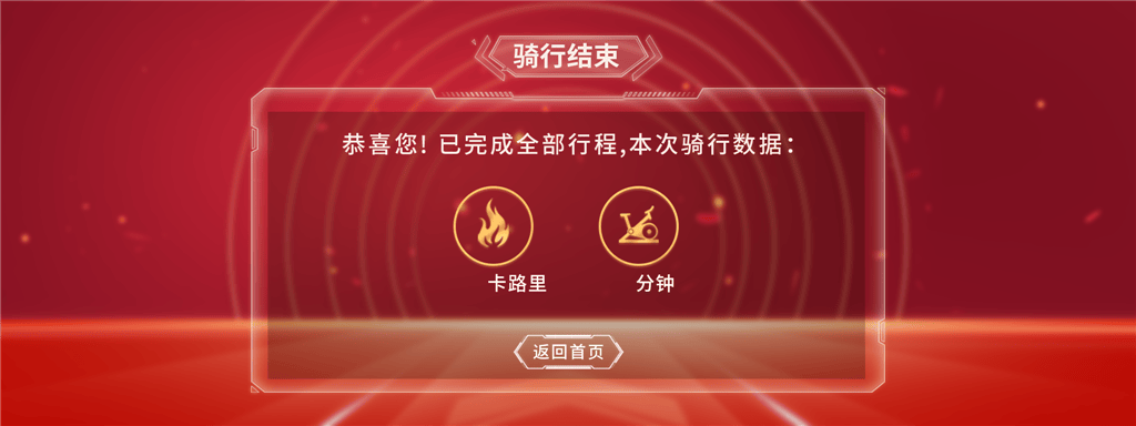 *支持骑行画面上有时速,卡路里总数,骑行总距离和总时间显示。