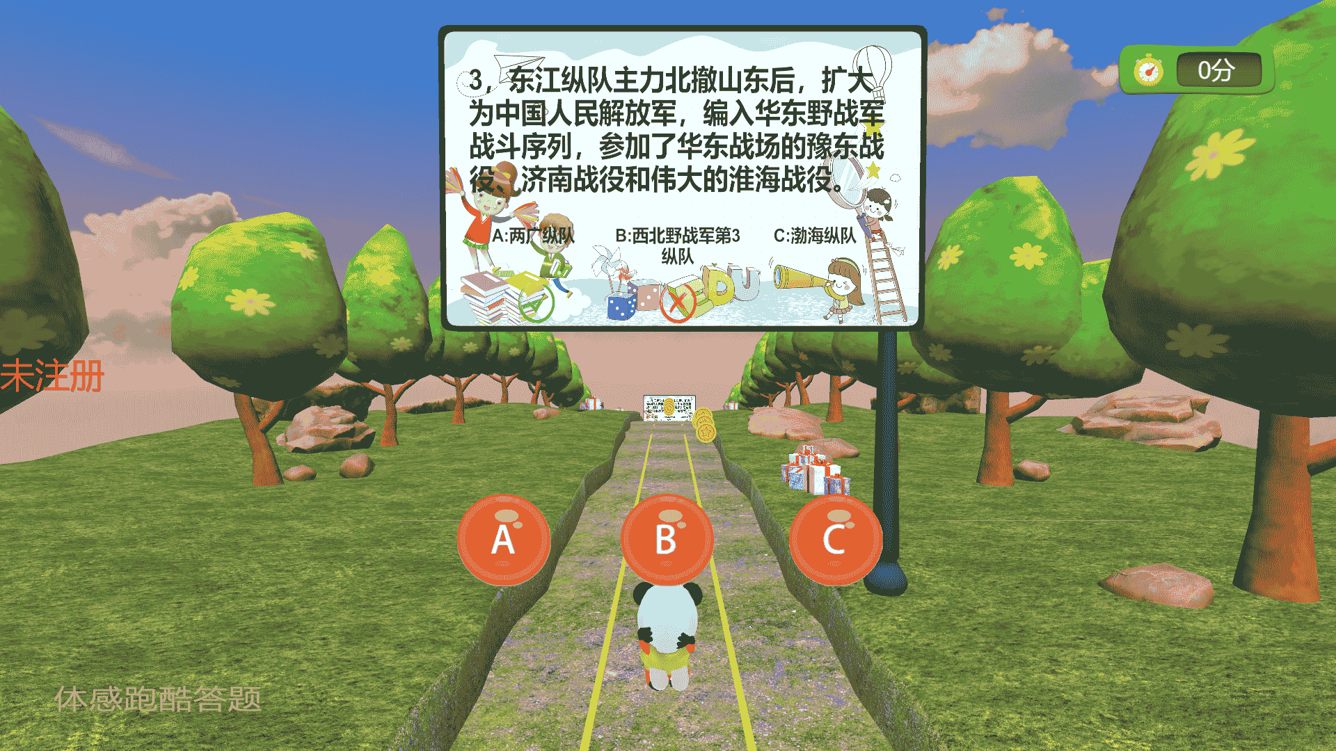 *支持AR人体感应体验者可以操控角色原地跑步、向前跑、左右移动、原地跳跃。