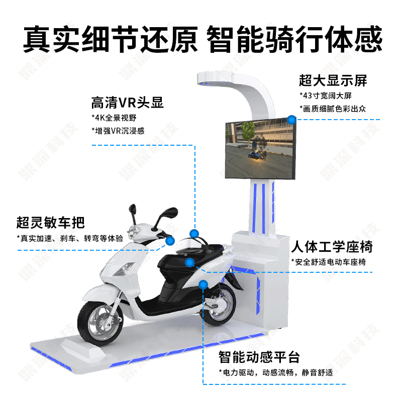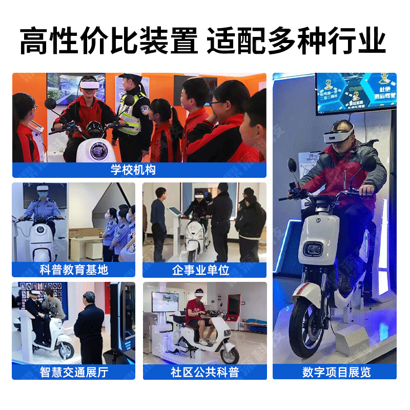 VR电动车是一款结合了虚拟现实技术和电动车辆真车改装的创新型体验设备。用户通过佩戴VR头盔,仿佛置身于一个真实的驾驶环境中,并且针对不同年龄、不同驾驶经验,提供个性化骑行软件内容,零危险学习体验电动车安全驾驶模拟。此外,设备还融入了人体工程学技术,让用户在长时间体验中也能保持舒适。可学习超过20节电动车安全课程,如超速驾驶、超载驾驶、未佩戴安全帽、违规变道、冲闯红灯等。